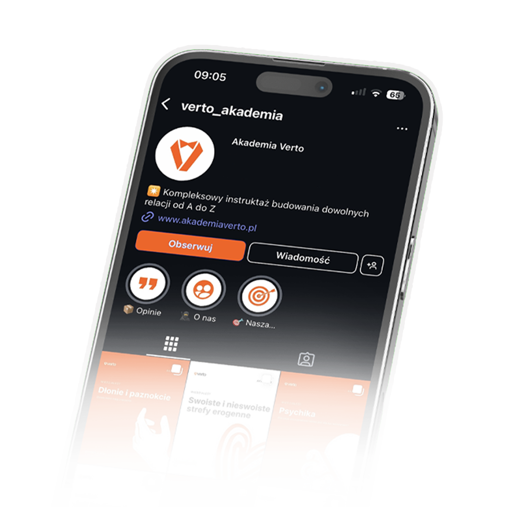 Jeśli chcesz wejść na znacznie wyższy poziom, dołącz do naszej specjalnej grupy na Telegramie, do której link otrzymasz od razu po zakupie. Dzięki temu uzyskasz możliwość dołączenia do Akademii Verto Plus i Pro, gdzie oprócz rozbudowanej, wspierającej społeczności, czeka na Ciebie aż +400 dodatkowych stron ebooka, wypełnionych zaawansowaną wiedzą, praktycznymi przykładami i gotowymi rozwiązaniami, które natychmiast przełożą się na Twoje relacje z kobietami.
